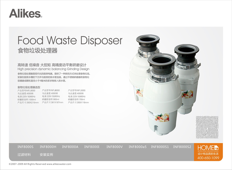食物垃圾處理器是一種現(xiàn)代化的廚房電器。他提供一種新的方式來處理現(xiàn)代家庭中的食物垃圾。安裝在廚房水槽的下方并與廚房的排水管連接。通過不銹鋼研磨器將食物垃圾碾磨成漿狀物排入排水管。粉碎后的顆粒直徑小于4毫米,不會堵塞排水管和下水道。食物垃圾處理器還可以與洗碗機(jī)相連接。
