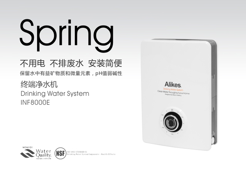 Alikes INF8000E凈水機(jī),采用國(guó)際流行的雙芯過(guò)濾的101水道平臺(tái),食品級(jí)高強(qiáng)材料成型,完善的人機(jī)工程學(xué)設(shè)計(jì)。采用大顯示的刻度盤以及阻尼適度的流量旋鈕。使用Alikes通水切換開(kāi)關(guān),同樣的******設(shè)計(jì)與凈水機(jī)配合相得益彰。去除水中的泥沙鐵銹,微生物、******,有害重金屬,游離余氯。同時(shí)改善了水的口味。飲用起來(lái)更清冽甘甜。