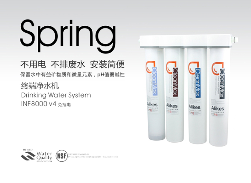 Alikes終端凈水機(jī)利用市政管道自來水的壓力驅(qū)動(dòng)水流,通過獨(dú)特的濾芯來達(dá)到生飲的標(biāo)準(zhǔn)。安裝簡易,即插即飲。去除水中的泥沙、******、鐵銹、懸浮物、有害重金屬、余氯異色和異味。不需用電,不產(chǎn)生廢水,即用即飲,不需儲(chǔ)水罐避免二次污染 , 確保飲水健康。是凈水機(jī)中的高端產(chǎn)品,適用于咖啡店,水吧商用,別墅、******商務(wù)樓、******住宅樓家用。滿足高端人群對(duì)高品質(zhì)飲水的需求 。